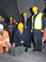 Proseguono i lavori per la realizzazione del tunnel Castelfeder, parte integrante della nuova circonvallazione di Ora. Oggi pomeriggio (12 febbraio) il presidente Luis Durnwalder e l'assessore Florian Mussner hanno partecipato alla perforazione dell'ultimo diaframma dell'importante opera stradale che sarà completata entro il 2010.