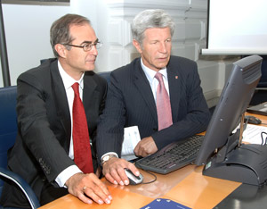 Gli assessori provinciali Hans Berger (informatica) e Werner Frick (economia) hanno presentato il progetto di e-governmet sviluppato congiuntamente dai Dipartimenti provinciali Tecnica Informatica ed Economia in collaborazione con Informatica Alto Adige SpA ed esperti esterni, relativo alla presentazione digitalizzata per le richiesta d’incentivazione economica nel settore dell'artigianato.