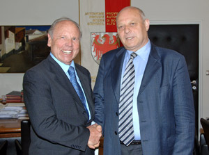 Nell'imminenza del cambio ai vertici della Camera di commercio, oggi a Palazzo Widmann il presidente uscente Benedikt Gramm ha preso congedo dal presidente Durnwalder. "Gramm ha ripercorso l'attività e le novità introdotte sotto la sua presidenza - spiega Durnwalder - segnata dalla buona collaborazione con l'ente pubblico e le associazioni economiche." Durnwalder e Gramm hanno ricordato la costruzione della nuova sede camerale in via Alto Adige a Bolzano, la riorganizzazione amministrativa, il contributo alla ridefinizione della nuova legge in materia dopo il passaggio delle competenze sulla Camera di commercio dalla Regione alla Provincia.