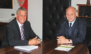 Quale nuovo presidente del Südtiroler Wirtschaftsring, l'unione di cui fanno parte le associazioni degli imprenditori, dei commercianti, degli artigiani, dei contadini, degli albergatori e dei liberi professionisti, il sindaco di Campo Tures Helmuth Innerbichler ha fatto visita a Luis Durnwalder a Palazzo Widmann.