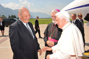 Durnwalder saluta papa Benedetto XVI all'aeroporto di Bolzano