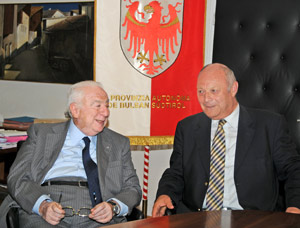 "Di quel disegno di legge per un plebisicito sull'autodeterminazione abbiamo parlato anche oggi - ha detto il presidente Durnwalder - e Cossiga mi ha spiegato che l'iniziativa andava intesa più come una provocazione. Lo ringraziamo perchè da amico dell'Alto Adige voleva ribadire che del riconoscimento dell'identità e dell'appartenenza di una minoranza bisogna sempre parlare." Cossiga è stato accolto dal Presidente della Provincia davanti al Palazzo 1; nel colloquio di circa 45 minuti nell'ufficio di Durnwalder ha ripercorso gli episodi, della vita familiare e della carriera politica, che lo legano all'Alto Adige. Cossiga ha ricordato tra l'altro di aver conosciuto Durnwalder a Corvara, quando era ancora giovane assessore all'agricoltura.