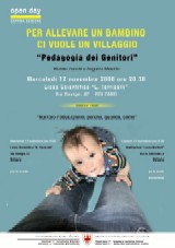 Nella serata avrà quindi luogo nella stessa sede un incontro aperto a tutta la cittadinanza dal titolo “Per allevare un bambino ci vuole un villaggio” al quale prenderanno parte i pedagogisti Riziero Zucchi ed Augusta Moletto del Centro Nazionale Documentazione e Ricerca Pedagogica dei Genitori.