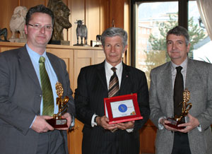 L'ass. Hans Berger, oggi, martedì 9 dicembre, ha incontrato a Bolzano le aziende altoatesine premiate venerdì scorso a Roma da "Qualivita", la Fondazione di Siena per la tutela e la valorizzazione dei prodotti agroalimentari di qualità. Premiati il formaggio "Stelvio" della Milkon e la mela altoatesina della VOG.