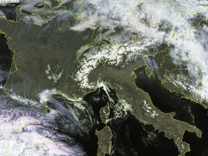 Negli ultimi dieci giorni soprattutto nelle zone meridionali dell’Alto Adige si sono registrati fenomeni di trasporto di polveri sottili provenienti dalle Regioni a sud come testimoniano le registrazioni della rete di rilevamento provinciale ed uno strano fenomeno di nebbiolina notato da molti e rilevato dal satellite (come indicato nell’immagine di EUMETSAT 2009 forniti dal Servizio Meteo della Provincia).