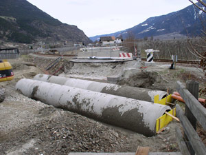 "Considerate le cattive condizioni della struttura in acciaio, è stato deciso di demolire il ponte e di sostituirlo con uno più piccolo e adeguato alla situazione, anche per migliorare ulteriormente la sicurezza nella circolazione", spiega l'assessore provinciale ai Lavori pubblici Florian Mussner. Nel nuovo ponte sono state inserite due tubazioni in calcestruzzo del diametro di un metro al fine di permettere un minimo travaso di acqua in caso di evento eccezionale. I lavori, in corso da una decina di giorni e coordinati dal Servizio strade val Venosta, termineranno i primi di aprile, con un costo per la Provincia di circa 40mila €.