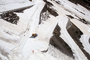 Il Servizio strade della Provincia sta lavorando per sgomberare fronti di neve alti 4-5 metri nell'ultimo tratto di strada che porta a passo Stelvio. L'obiettivo è quello di liberare la Statale entro fine maggio e consentire il regolare transito del traffico. In questi giorni la Provincia interviene anche con esplosioni per indurre il distacco di valanghe lungo i versanti.