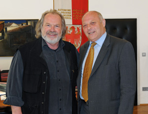 Nel cordiale colloquio a Palazzo Widmann il presidente Durnwalder ha fatto il punto con il diretto interessato suegli sviluppi riguardo al futuro dell'orchestra regionale Haydn e sulla permanenza di Gustav Kuhn alla direzione artistica. "Abbiamo approfondito le recenti questioni - spiega Durnwalder - che avevano portato il maestro Kuhn a ripensare il suo rapporto con la Haydn e a chiedere i necessari chiarimenti per poter proseguire nel suo impegno."