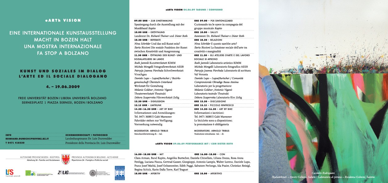 Dal 4 al 19 giugno 2009 la mostra itinerante internazionale "eArth vision", nella quale l'arte è effettivamente un linguaggio universale che contribuisce alla reciproca comprensione, farà tappa a Bolzano, nella sede della Libera Università di Bolzano. La mostra internazionale raccoglie opere di artisti disabili di vari Paesi del mondo: Giappone, Corea del Sud, Australia Etiopia, Inghilterra, Svizzera, Italia (Alto Adige), Brasile. Scopo della mostra è promuovere l’arte come forma di dialogo, favorire l’inserimento sociale dei disabili, mostrarne la capacità artistica e di produrre valore attraverso visioni innovative.