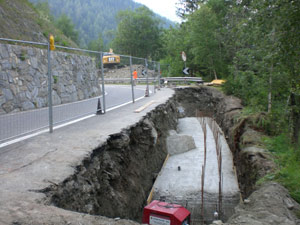 Sono iniziati i lavori sulla Statale 508 in val di Vizze per il consolidamento della strada al km 75, vicino alla diga. Verrà demolito un vecchio muro di sassi e ricostruito in cemento, con un allungamento che aumenterà la sicurezza della strada.