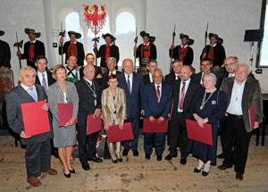 Renate Bawiedemann è responsabile del Kulturwerk für Südtirol, "un'associazione germanica - ha spiegato il presidente Durnwalder - che si occupa di sostenere istituzioni culturali e formative sul territorio altoatesino". Hans Rudolf Beierlein, invece, è il padre del Gran Prix der Volksmusik, "una manifestazione - ha sottolineato Durnwalder - che favorisce i contatti tra l'Alto Adige e l'area di lingua tedesca". Il primo non altoatesino di lingua italiana a ricevere l'Ordine di merito della Provincia di Bolzano è Aldo Cosentino. "Nel suo ruolo di alto funzionario del Ministero dell'ambiente - ha ricordato il governatore altoatesino - ha rappresentato un punto di riferimento importante per la nostra Provincia a Roma, e ci ha sostenuto nelle questioni riguardanti i parchi naturali". L'onorificenza è stata assegnata anche ad Hans Goebl, linguista e professore universitario, "che ha avuto il merito - ha spiegato Durnwalder - di risvegliare l’interesse scientifico e culturale nei confronti della lingua e della cultura ladina". Tra i premiati anche il giornalista bavarese Hans-Dieter Hartl, che ha realizzato filmati, servizi e documentari sull'Alto Adige, il funzionario del Ministero austriaco dell'istruzione Günter Oberleitner, tra i principali sostenitori del riconoscimento dei titoli di studio ottenuti all’estero e della presenza della letteratura austriaca in Alto Adige, e l'imprenditore Gerd Schildbach, la cui onorificenza è stata ritirata dalla figlia Karin Eders. L'altro Ordine di merito assegnato ad una personalità di lingua italiana è andato alla parlamentare Elena Montecchi: "nei suoi incarichi da sottosegretaria - ha ricordato Durnwalder - ha sempre avuto a cuore le vicende altoatesine, in maniera particolare per ciò che riguarda la scuola, la cultura e l'energia". Sarà consegnata in un'altra data, invece, l'onorificenza al giornalista della Frankfurter Zeitung Reinhard Olt.