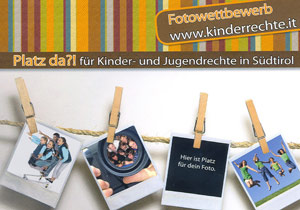 Nel corso della conferenza stampa è stato anche lanciato il concorso fotografico “Platz da?” con il quale si vuole invitare i giovani ad inviare fotografie che documentano come giovani e bambini riescono a farsi spazio nel mondo degli adulti. Le fotografie potranno essere inviate al sito www.kinderrechte.it sino all’8 di novembre e la premiazione si svolgerà il 20 novembre presso il Consiglio provinciale.