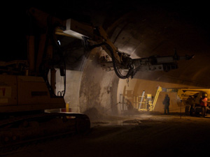 Si lavora a pieno ritmo nella galleria Castelfirmiano sulla superstrada MeBo per la realizzazione di un cunicolo che garantirà il collegamento tra le due gallerie. "Il nuovo collegamento fungerà da via di fuga e consentirà interventi rapidi ogniqualvolta dovessero verificarsi problemi in una delle due gallerie", sottolinea l'assessore provinciale ai Lavori pubblici Florian Mussner.