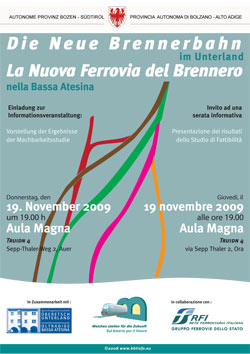 19 novembre: presentazione dello studio sulla ferrovia del Brennero in Bassa Atesina