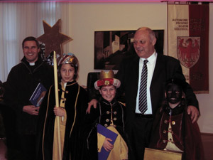 Come da lunga tradizione, vestiti da Re Magi oltre 6mila ragazzini di tutte le parrocchie altoatesine girano di casa in casa tra il 27 dicembre e l'Epifania per annunciare la nascita del Bambino e raccogliere offerte destinate a progetti in favore di bambini meno fortunati. Al presidente Durnwalder ha fatto visita stamattina a Palazzo Widmann una delegazione di Re Magi della parrocchia del Duomo di Bolzano.