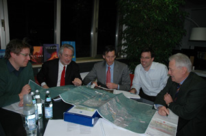 Discussa la nuova proposta di mobilità: da sinistra, Maurizio Todesco (PR Leitner), Ermenegildo Zordan (responsabile tecnico trasporto urbano), l'assessore Widmann, Anton Seeber della Leitner e il direttore di Dipartimento Gianfranco Jellici
