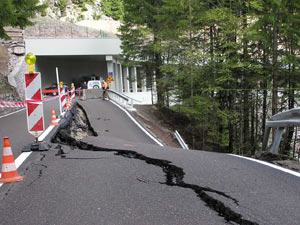 Le persistenti precipitazioni dei giorni scorsi hanno provocato una fenditura e la successiva frana nel muro di sostegno a valle che ha comportato anche il distacco dell'asflato sulla strada per passo Palade, in prossimità della galleria Fainlahn nel comune di Tesimo. Sono in corso i lavori di messa in sicurezza della strada, che al momento è percorribile solo a senso unico e solo per le autovetture.