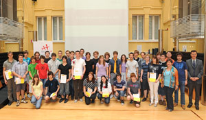 Numerosi studenti degli istituti superiori di lingua tedesca che hanno preso parte nel corso dell’anno scolastico alle “Olimpiadi scolastiche“ nelle varie materie: matematica, informatica, fisica e chimica. 46 di loro hanno ottenuto prestazioni particolarmente buone e per tale ragione oggi, martedì 8 giugno 2010, sono stati insigniti a Palazzo Widmann dall'assessora provinciale Sabina Kasslatter Mur e dall'Intendente scolastico Peter Höllrigl.