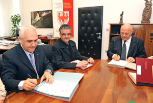 "La collaborazione tra Stato e Provincia in questo ambito sta portando a buoni risultati con reciproca soddisfazione", ha sottolineato Durnwalder. Significativa anche la convenzione siglata nell’occasione dal Presidente con il sindaco di Curon Venosta Heinrich Noggler: la Provincia ha "girato" al Comune una fetta di terreno ceduta dallo Stato, "superficie che contribuirà alla riqualificazione urbanistica e della viabilità nel centro di Curon", spiega Durnwalder. Il Comune costruirà infatti un marciapiede, rettificherà la strada e potrà ricavare nuovi posti macchina.