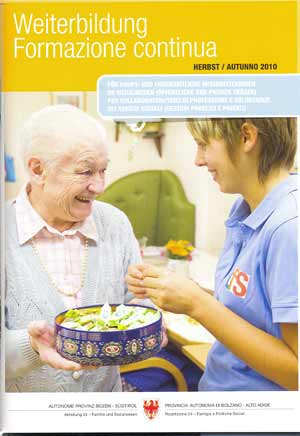 Il programma di formazione continua, raccolto in una guida di facile consultazione, è frutto della collaborazione con la scuola provinciale per le professioni sociali "Hannah Arendt" ed è edito dalla Ripartizione provinciale Famiglia e politiche sociali, Bolzano, Palazzo provinciale 12, via Canonico Gamper 1, www.provincia.bz.it/politiche-sociali
