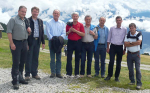 Colloqui sulla riforma agraria: l'assessore Berger, gli europarlamentari Deß (quarto da destra) e Dorfmann (secondo da destra) e i rappresentanti di Provincia e Unione agricoltori