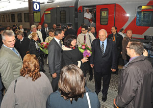 "Per favorire ulteriormente le relazioni con l'Est Europa e gli scambi sia sul piano culturale che turistico abbiamo lavorato a lungo a questo progetto nelle Alpi con il presidente delle Ferrovie russe Vladimir Jakunin", ha ricordato il presidente Durnwalder. L'assessore Widmann ha definito "un grande onore e un segno dell'amicizia della Russia verso il piccolo Alto Adige" il ripristino del treno tra Mosca e Bolzano, che richiama al famoso Orient Express: "Un collegamento che combina la nostalgia con la modernità e che avrà sicuramente grande presa sui turisti", ha aggiunto Widmann. Nella semplice cerimonia in stazione, accompagnata dalle note della banda musicale di Bolzano, Luis Durnwalder ha ribadito che "questo treno favorisce e facilita l'incontro tra cittadini di realtà diverse ma anche la cooperazione economica, che già oggi vede aziende altoatesine al lavoro per committenti russi."