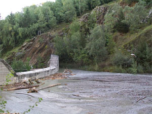 Anche il materiale sceso a valle lungo il torrente (un totale di 20.000 metri cubi) non ha costituito un pericolo per il paese grazie ai muri dell'argine rinforzati ed ai dispositivi realizzati. I Vigili del Fuoco di Cengles attivando le porte scorrevoli installate a suio tempo hanno potuto chiudere i punti dell'argine "aperti" all'altezza dell'intersezione con i ponti e le le strade.