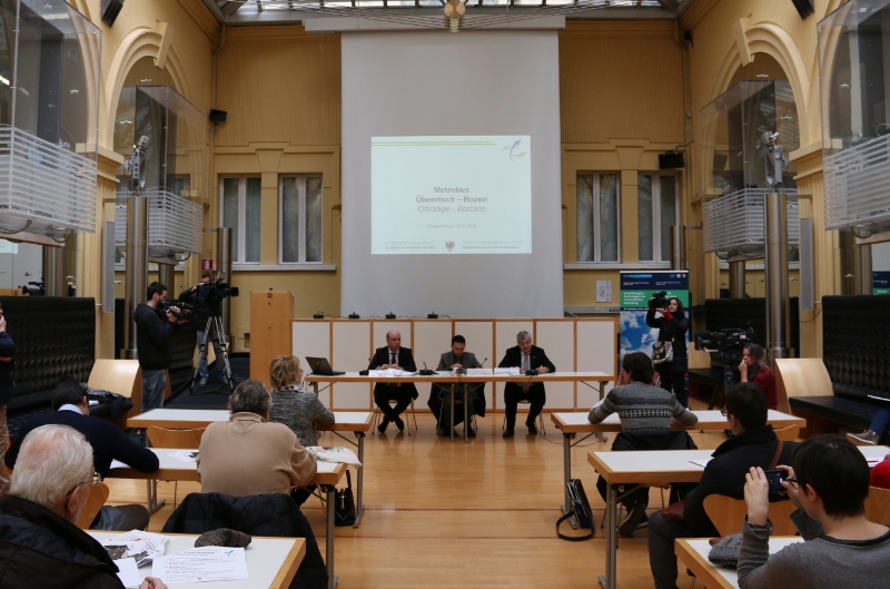 Il punto della situazione e i prossimi passi nell'attuazione del Metrobus fra Bolzano e l'Oltradige sono stati illustrati questa mattina lunedì 22 dicembre a Palazzo Widmann a Bolzano dagli assessori provinciali Florian Mussner (mobilità) e Christian Tommasini (lavori pubblici). L'avvio dei nuovi lavori già a febbraio 2015.