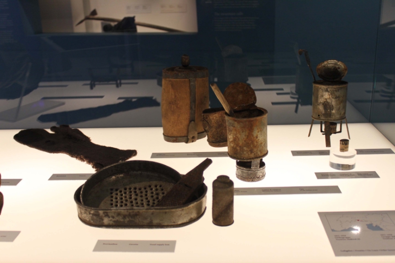 Reperti dell'esercito austro-ungarico e italiano risalenti alla Prima Guerra Mondiale ci parlano delle dure condizioni di vita dei soldati sul fronte dell'Ortles. Scarpe, sovrascarpe, calze, guanti, maschera antigas, scatole di conserva e rotoli di carta per cucinare mostrano cosa significasse riuscire a sopravvivere difendendo in più i rispettivi confini.