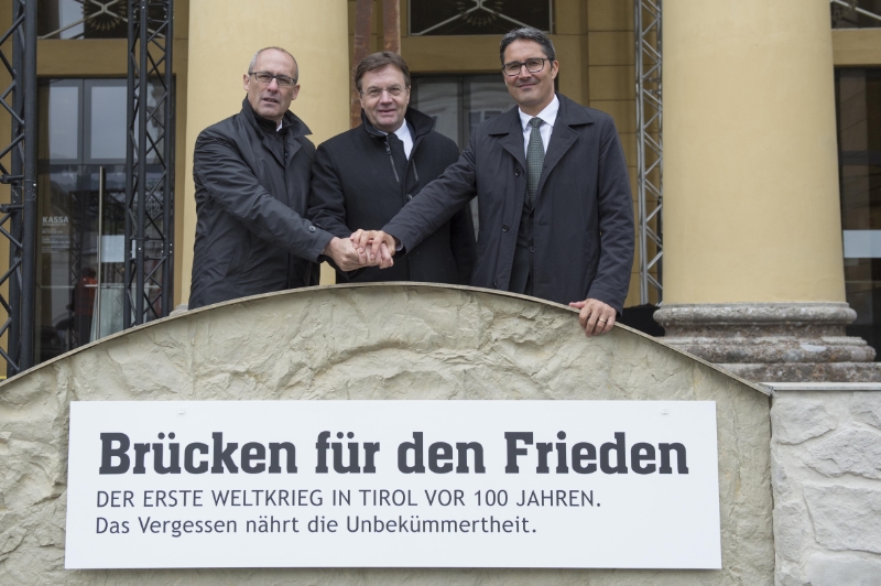 Oggi (23 maggio) a Innsbruck, nel giorno in cui un secolo fa l'Italia dichiarava guerra all'Austria, i tre territori dell'Euregio hanno ricordato quel tragico anniversario e ribadito l'impegno a costruire ponti per la pace. La manifestazione si è svolta su iniziativa dei presidenti Arno Kompatscher (Provincia di Bolzano), Günther Platter (Tirolo) e Ugo Rossi (Trentino), presenti all'evento.