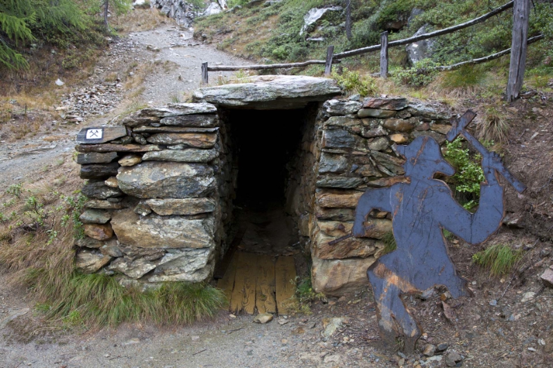 In una di esse è anche possibile infilarsi, a proprio rischio, sperimentando le difficili condizioni dei minatori dell'epoca e la ristrettezza degli spazi in cui erano costretti a lavorare. Il sentiero dei minatori offre inoltre suggestivi scenari naturali, come un passaggio vicino a una cascata e il maestoso panorama sulla vallata, le montagne e i ghiacciai circostanti.