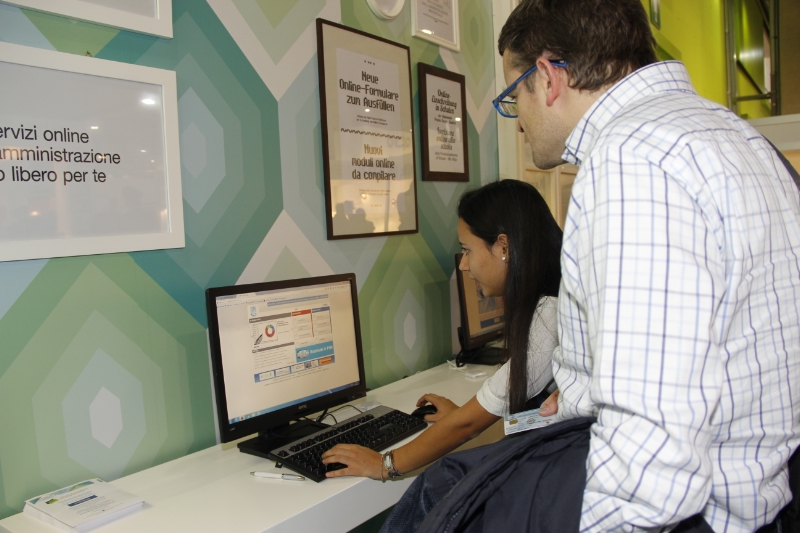 Sono circa 40 i servizi di eGovernment online offerti dalla Provincia di Bolzano che in questi giorni possono essere personalmente testati alla Fiera d'autunno presso lo stand della Ripartizione informatica e di Informatica Alto Adige. Lo spazio è stato visitato ieri (19 novembre) dall'assessora provinciale Waltraud Deeg.