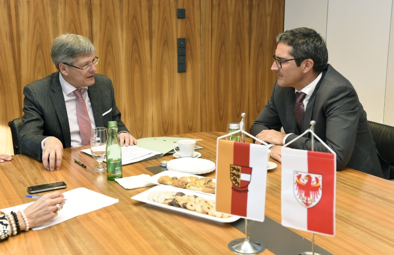 La situazione dei profughi, la cooperazione europea, la tutela delle minoranze e possibili partnership nell'economia e nella navigazione aerea: sono i temi approfonditi oggi (20 novembre) a Klagenfurt dal presidente della Provincia Arno Kompatscher nel primo incontro ufficiale.con il governatore della Carinzia Peter Kaiser.