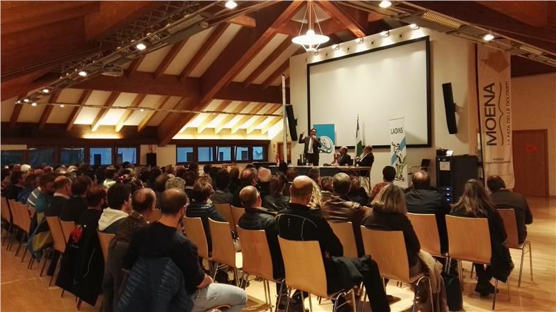 "L'identità si costruisce attorno ad elementi anche valoriali - ha ricordato l'assesore regionale ladino Giuseppe Detomas - e in questa fase mi pare che su questo non si rifletta abbastanza. Certo, mettere sotto i riflettori i nostri valori costitutivi può rappresentare un rischio, specie ora che l'Autonomia del Trentino Alto Adige viene vista con sospetto dagli altri territori, ma è un rischio da correre. Dobbiamo considerare innanzitutto i cambiamenti intervenuto in Europa dalla fine degli anni '80 ad oggi. Rispetto alla prima stagione autonomistica, prima la caduta del comunismo, poi il trattato di Schengen, hanno cambiato il valore dei confini e anche, di riflesso, la dialettica fra minoranze linguistiche e stati nazionali. Parimenti sono cambiati parametri e valori economici, come quello della nostra produzione idroelettrica, un tempo considerata strategica. Tutto questo impone delle riflessioni. Dobbiamo davvero pensare cosa tenere, quali sono gli elementi identitari che ancora ci contraddistinguono in maniera forte, qui, in un territorio a cavallo fra due province. Una cosa è certa: la questione ladina e' centrale nel contesto del dibattito sul nuovo Statuto, rappresentando un elemento di unione nel contesto regionale".