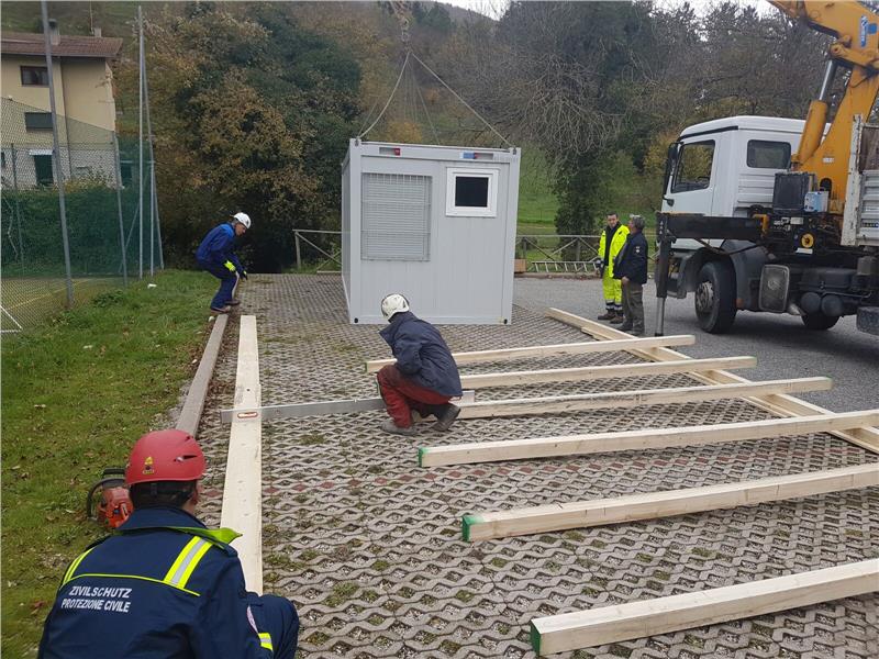 Il team, composto da collaboratori dell’Agenzia per la Protezione civile e della Croce bianca, ha lavorato in stretto contatto con la Sala operativa integrata della Protezione civile di Macerata per predisporre la rapida installazione dei container provenienti dall'Alto Adige.