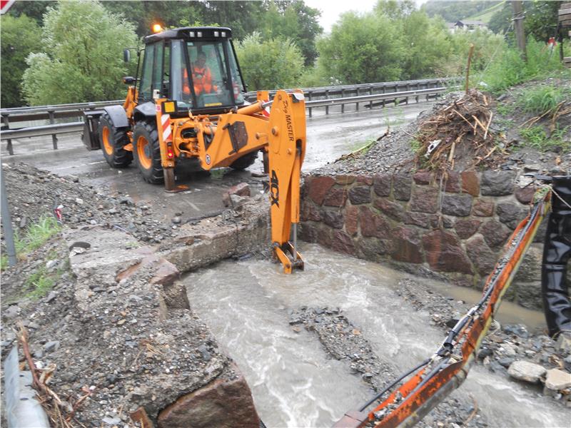 Il rio Brugger scorre nuovamente attraverso il condotto di scarico sotto la strada statale prima di gettarsi nel fiume Isarco. Sono parzialmente aperti due attraversamenti, sui quali sono in atto interventi di sgombero. Al lavoro la squadra del Servizio strade di Chiusa e i Vigili del fuoco volontari di Chiusa-Velturno-San Pietro Mezzomonte. Il materiale detritico è stato asportato grazie ad un escavatore sia dalla strada che dal torrente e caricato su due camion. All'opera erano anche due ditte specializzate, la Kanaltec e la Beton Eisack.