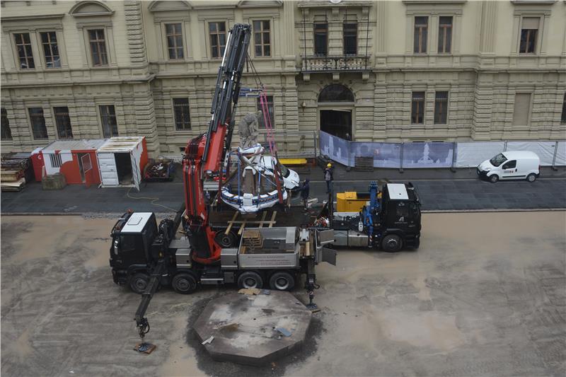 Sono cominciati questa mattina (12 aprile) e sono terminati nel tardo pomeriggio in piazza Magnago i lavori per lo spostamento della statua di Re Laurino dall’attuale collocazione a quella temporanea nel parco di piazza Stazione. "Si tratta di un un’operazione delicata – spiega Irene Braito dell'Ufficio edilizia est, responsabile del progetto di riqualificazione della piazza – anche alla luce dello stato di conservazione del manufatto che presenta già numerose crepe". La fontana e il gruppo scultoreo, composti in tutto da una decina di pezzi, pesano tra le 16 e le 18 tonnellate. I tecnici della ditta specializzata Südtirol Stein, in accordo con l’Ufficio beni architettonici e artistici, hanno elaborato un piano per lo spostamento che prevede di "imballare" la struttura per renderne possibile dapprima il sollevamento tramite delle cinghie e quindi il trasporto.