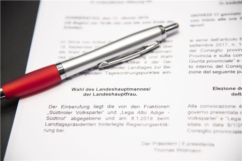 Il presidente della Provincia uscente Arno Kompatscher è stato eletto oggi (17 gennaio) dal Consiglio provinciale con 19 voti a favore su 35 dopo essere stato formalmente designato come candidato unitario della Südtiroler Volkspartei e della Lega Salvini Alto Adige-Südtirol. Nel suo discorso di insediamento il presidente ha fatto esplicito riferimento ai due principi guida del programma di governo: "Legalità e umanità". Si tratta secondo Kompatscher "di valori che siamo chiamati oggi a confermare non solo a parole ma anche nei fatti, per affrontare anche questo tema non con paura ma guardando al futuro con ottimismo, cercando di gestire questo tema e non di subirlo". Il presidente ha confermato di voler fare in prima persona da garante del rispetto di questi valori.