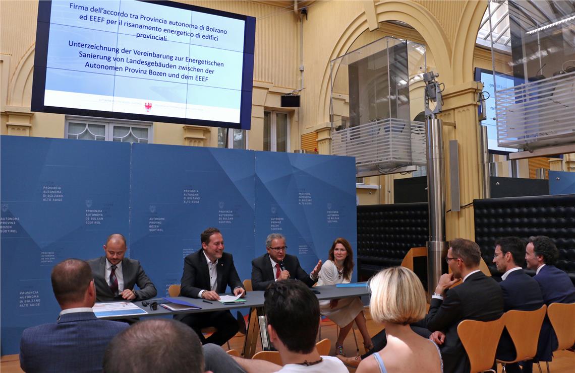 Alexander Gallmetzer da parte sua ha evidenziato il coinvolgimento della sua struttura nel proporre, in stretta collaborazione con la Provincia, "soluzioni finanziarie innovative per lo sviluppo economico dell’intero territorio che potranno essere messe a disposizione anche di altri enti per ulteriori progetti". Con la sottoscrizione del contratto con eeef è stata avviata la prima fase volta a valorizzare le risorse esistenti a livello locale ed europeo. Le professionalità coinvolte saranno coordinate dalla Provincia che potrà attingere alle risorse finanziarie messe a disposizione dalla Commissione Europea, tramite il fondo eeef. Quando gli studi e gli audit saranno conclusi prenderà il via la seconda fase con la selezione di operatori economici specializzati per la realizzazione e gestione di investimenti stimati pari a 40 milioni di euro. In questa fase si prevede la partecipazione dello stesso fondo eeef che potrà supportare finanziariamente (dai 5 ai 20 milioni di euro) gli interventi tramite strumenti finanziari ad hoc, sottoscrizione di project bond e immissione di capitale. Inoltre, grazie a PensPlan Invest Sgr, si prevede la possibilità di attirare ulteriori investitori nel progetto al fine di massimizzare i benefici per la Provincia e così facilitare la selezione delle migliori imprese anche di piccole-medie dimensioni. L’ultima fase prevede l’estensione del programma a ulteriori edifici della Provincia e dei Comuni.