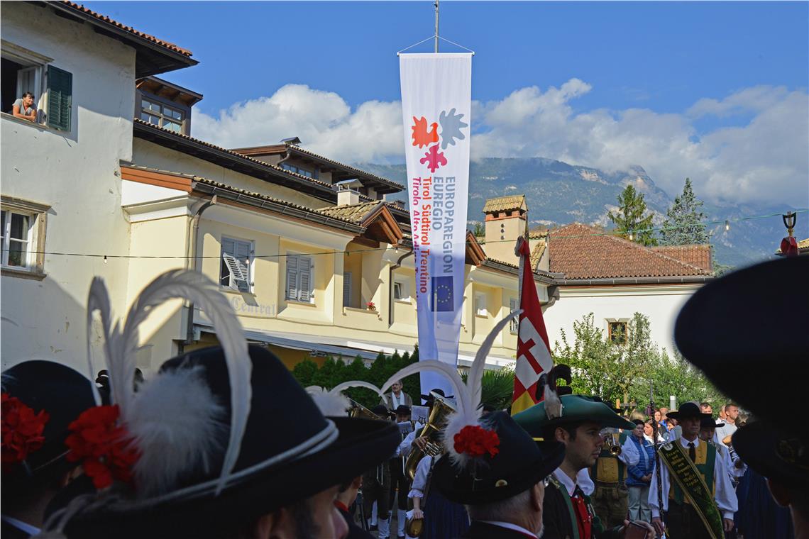 Anche il capitano tirolese Günther Platter ha sottolineato il valore della tradizione, che deve condurre al futuro: "Cento anni dopo la divisione del nostro territorio, dobbiamo fare tutto il possibile far sentire di nuovo unite le persone. Ciò richiede anche progetti concreti e questo festival ne è un perfetto esempio". Il presidente trentino Maurizio Fugatti ha parlato di "una storia comune che si riflette nel presente di oggi e conduce con uno spirito di unità nel futuro". Le tre diverse realtà del Trentino, dell'Alto Adige e del Tirolo trovano la loro unità nell'Euregio: "Questo è il suo grande valore" ha detto Fugatti. Tutti e tre i presidenti hanno sottolineato quanto siano concreti i problemi e le preoccupazioni che le tre regioni hanno in comune: combattere il cambiamento climatico, ridurre il traffico di transito, prevenire catastrofi naturali sono solo alcuni esempi. Ma anche dare risposte alle famiglie e ai giovani, coordinare le attività di ricerca e sviluppo e molto altro. E per il futuro, hanno annunciato Komptascher e Platter, arriverà un abbonamento congiunto per il trasporto pubblico. Il sindaco di Egna, Horst Pichler, lo ha definito un "raro onore dare il benvenuto a tre presidenti contemporaneamente, insieme a molti visitatori provenienti da tutta l'Euregio". Il sindaco fatto riferimento al ricco programma, a cui partecipano circa 20 associazioni, 50 spazi espositivi e molti artisti e musicisti. All'inizio della cerimonia una compagnia di Schützen ha anche consegnato personalmente ai tre presidenti una risoluzione con le proprie richieste.