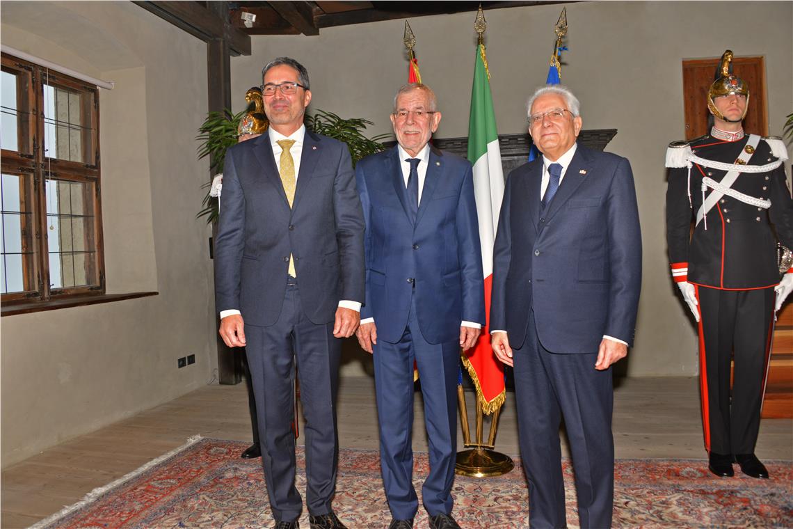 Accogliendo i presidenti Mattarella e Van der Bellen a Castel Tirolo, il presidente Arno Kompatscher ha parlato di pacifica convivenza e di dialogo basato sul rispetto reciproco.