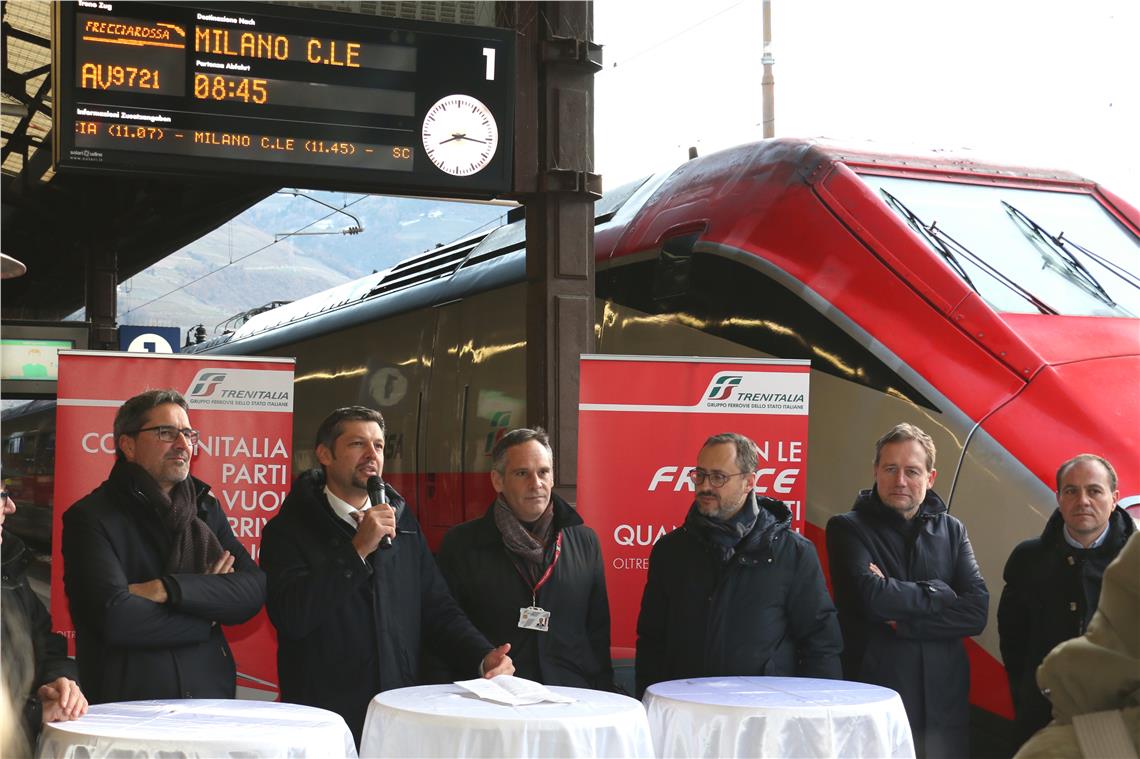 Primo viaggio per il treno diretto che collega Bolzano a Milano in sole tre ore. Presentazione ufficiale con Kompatscher, Alfreider e i vertici di Trenitalia.