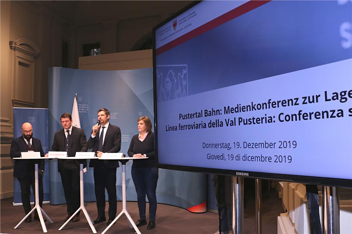 Lunedì 23 dicembre, a mezzogiorno, dopo alcune settimane di chiusura a causa dei danni dovuti al maltempo di metà novembre, gran parte della linea ferroviaria della Val Pusteria potrà essere riaperta alla circolazione dei treni. "Dobbiamo veramente ringraziare tutti: i collaboratori della Provincia, i tecnici, i geologi, Rete Ferroviaria Italiana, le ditte che stanno svolgendo i lavori. Grazie al contributo di tutti siamo in grado di poter dare questo annuncio", ha detto oggi (19 dicembre) l’assessore Daniel Alfreider nel corso di una conferenza stampa a Palazzo Widmann.