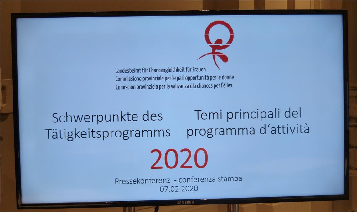 Nel corso del 2020 la Commissione provinciale per le pari opportunità intende portare avanti un intenso programma di attività. Nata nel 1990, da 30 anni la Commissione svolge un ruolo importante per dare spazio e visibilità alle tematiche di stretta urgenza sociale come l'equità di genere, il rispetto delle donne nella società e la parità di retribuzione, sensibilizzando a questo proposito la popolazione tutta. "Il fatto che la Commissione sia attiva da 30 anni è solo in parte motivo di soddisfazione. Ciò significa, infatti, che la parità di diritti non è stata ancora completata" ha sottolineato oggi (7 febbraio) la presidente della Commissione, Ulrike Oberhammer, nel corso della conferenza stampa di presentazione del programma annuale di attività. Nel prossimo mese di ottobre verrà promossa, tra l'altro, una particolare azione per celebrare i 30 anni di attività della Commissione provinciale. Altri appuntamenti di rilievo del 2020 saranno rappresentati dal decennale dell'Equal Pay Day, che si celebrerà il 24 aprile, e della legge sulle pari opportunità. La Commissione sta infatti lavorando a una legge sulle pari opportunità e a nuove misure per l'equità dei compensi fra generi.