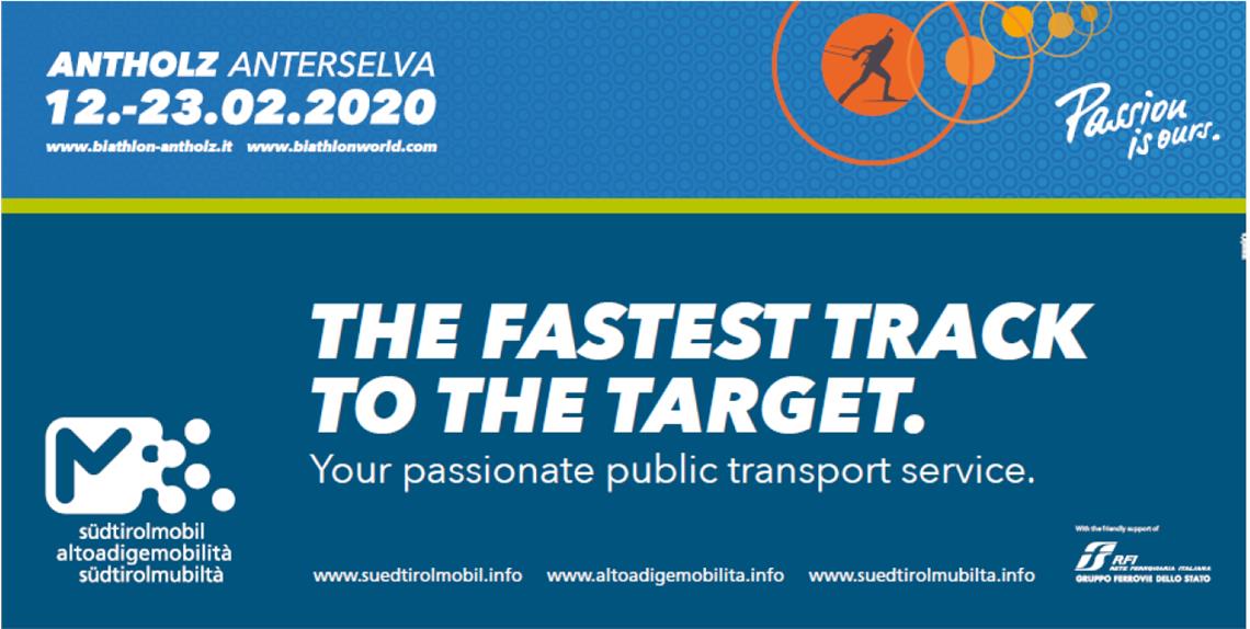 Un sistema integrato bus-treno per raggiungere in modo doppiamente vantaggioso la Südtirol Arena, location dei Mondiali di biathlon: il Comitato organizzatore della manifestazione collabora dal 2007 con altoadigemobilità per offrire un modo semplice e sostenibile di arrivare ad Anterselva. Per l'edizione 2020 della kermesse sportiva la collaborazione si rafforza ulteriormente, con treni supplementari in servizio sulla linea ferroviaria della Val Pusteria dal 12 al 23 febbraio, vale a dire per l'intera durata della manifestazione. Soprattutto nelle ore serali (dopo le premiazioni) e nei fine settimana i treni collegheranno Anterselva con il resto della Val Pusteria.