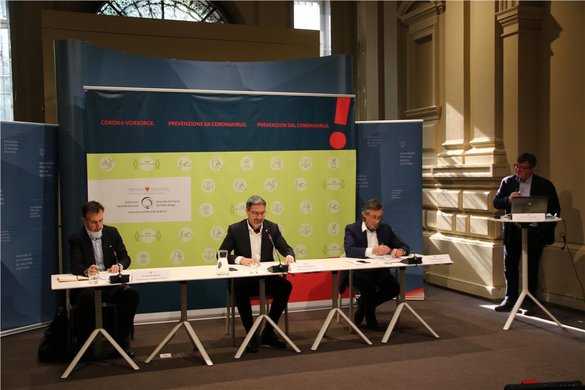 Gli aspetti medici e sanitari dell'epidemia da nuovo coronavirus sono stati illustrati oggi nell'ambito della conferenza stampa virtuale quotidiana organizzata dall'Agenzia per la stampa e la comunicazione della Provincia. Il punto della situazione e l'analisi dei dati aggiornati è stata fatta dal presidente della Provincia Arno Kompatscher, dall'assessore alla sanità Thomas Widmann e dal direttore sanitario dell'Azienda sanitaria dell'Alto Adige Pierpaolo Bertoli. Il presidente Kompatscher ha fatto il punto sui dati relativi al nuovo coronavirus e ai casi di Covid-19 e risposto alle domande dei giornalisti.