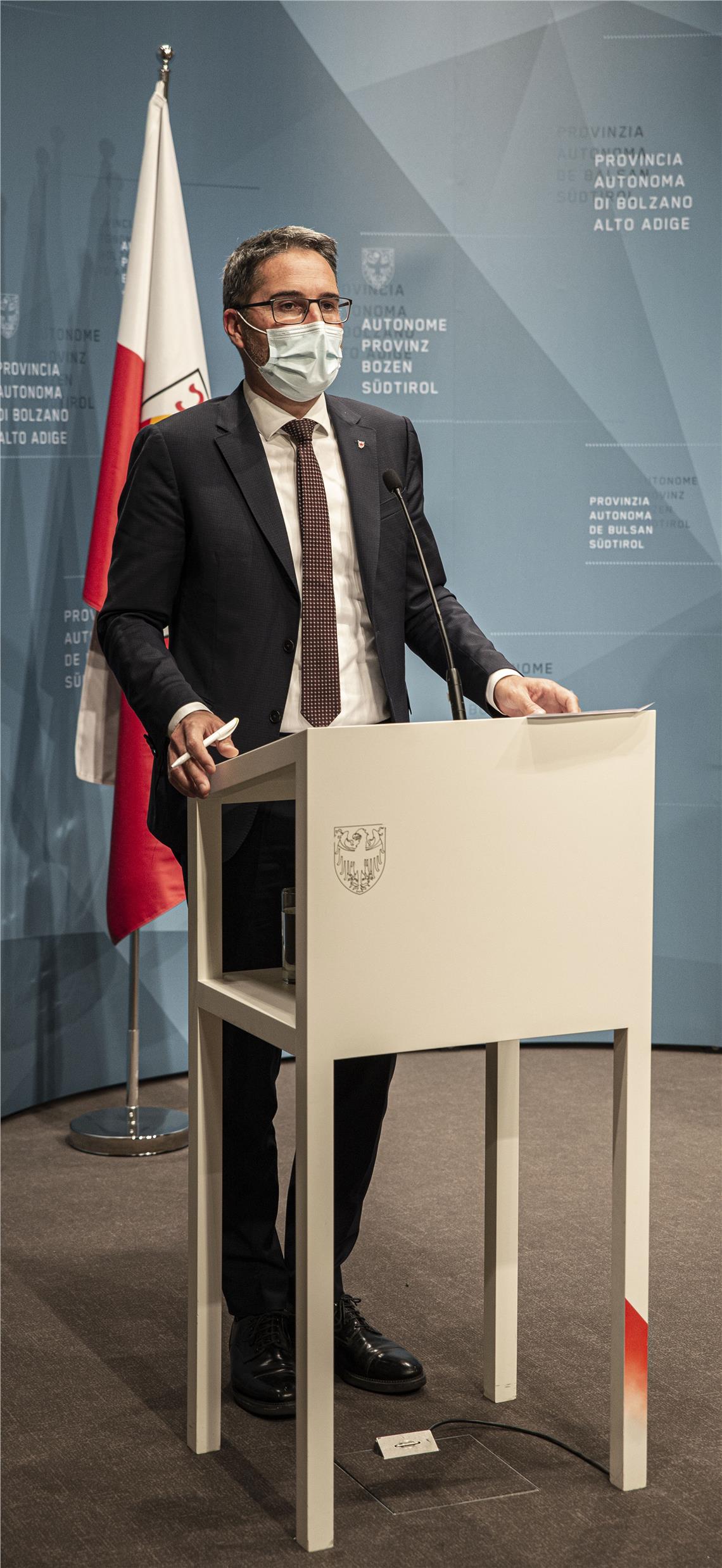 La crescita dei contagi da Sars-CoV-2 in Alto Adige e in Italia ha tenuto impegnata per tutta la giornata di oggi (2 novembre) la Giunta provinciale. In mattinata seduta straordinaria dell'esecutivo, che è proseguita nel pomeriggio, quindi un continuo confronto sia con Roma che con i gruppi del Consiglio provinciale sino a giungere all'annuncio delle nuove misure di restrizione, avvenuto nel tardo pomeriggio, da parte del presidente Arno Kompatscher e dell'assessore alla salute Thomas Widmann. Domani sarà firmata una nuova ordinanza, che entrerà in vigore a partire dalla mezzanotte di mercoledì 4 novembre e sarà valida sino al 22 novembre in tutto il territorio altoatesino.