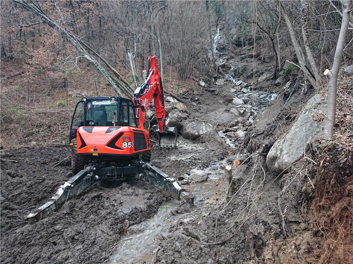 Dopo i danni provocati dall'ondata di maltempo di inizio dicembre, i tecnici dell'Ufficio sistemazione bacini montani ovest hanno iniziato gli interventi di ripristino nelle zone di Naturno e Lagundo.
