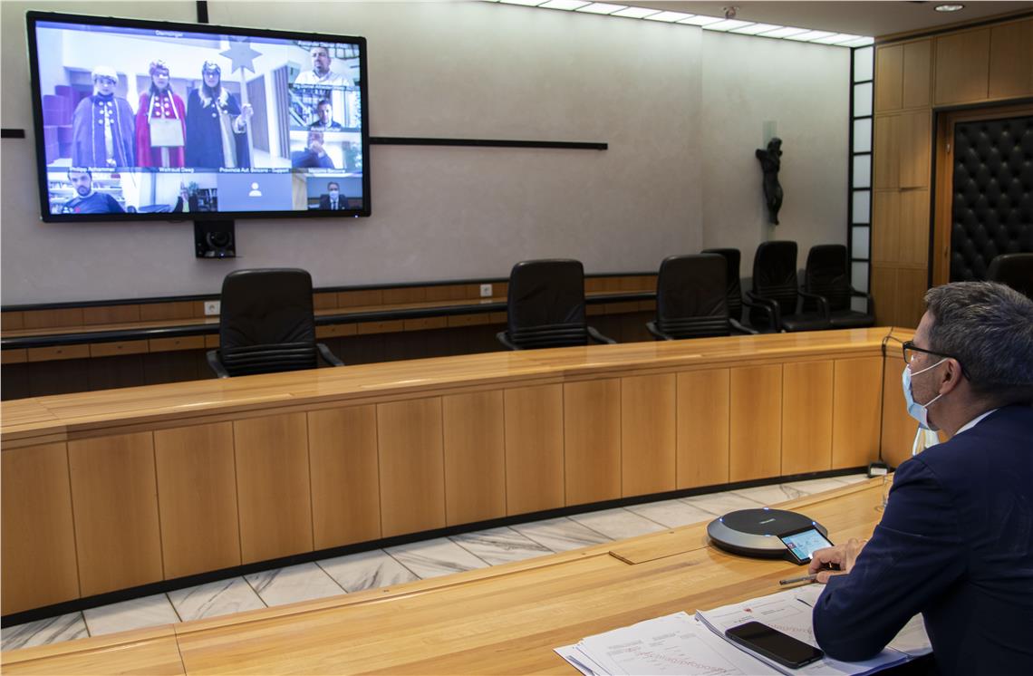 Da casa tre fratelli bolzanini hanno fatto gli auguri alla Giunta riunita in videoconferenza. Ogni anno gli Sternsinger raccolgono offerte per progetti benefici.