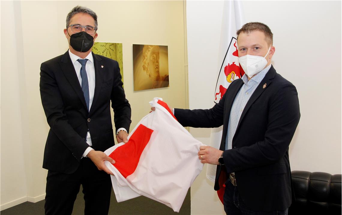 In occasione della giornata mondiale della Croce Rossa, consegnata a Kompatscher la bandiera dell’organizzazione. Sarà esposta all’interno di Palazzo Widmann, segnale di pace e solidarietà.